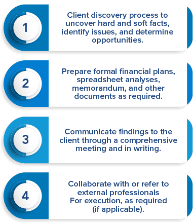 We are objective because we sell no products whatsoever. Our sole purpose is unbiased, objective financial, tax and estate planning advice.